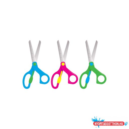 Iskolai olló, kényelmes fogást biztosító ergonomikus kialakítással. Jó minőségű, hegyes rozsdamentes acélpenge.