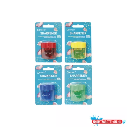 Hegyező 2 lyukú műanyag, tartályos Connect bliszteres