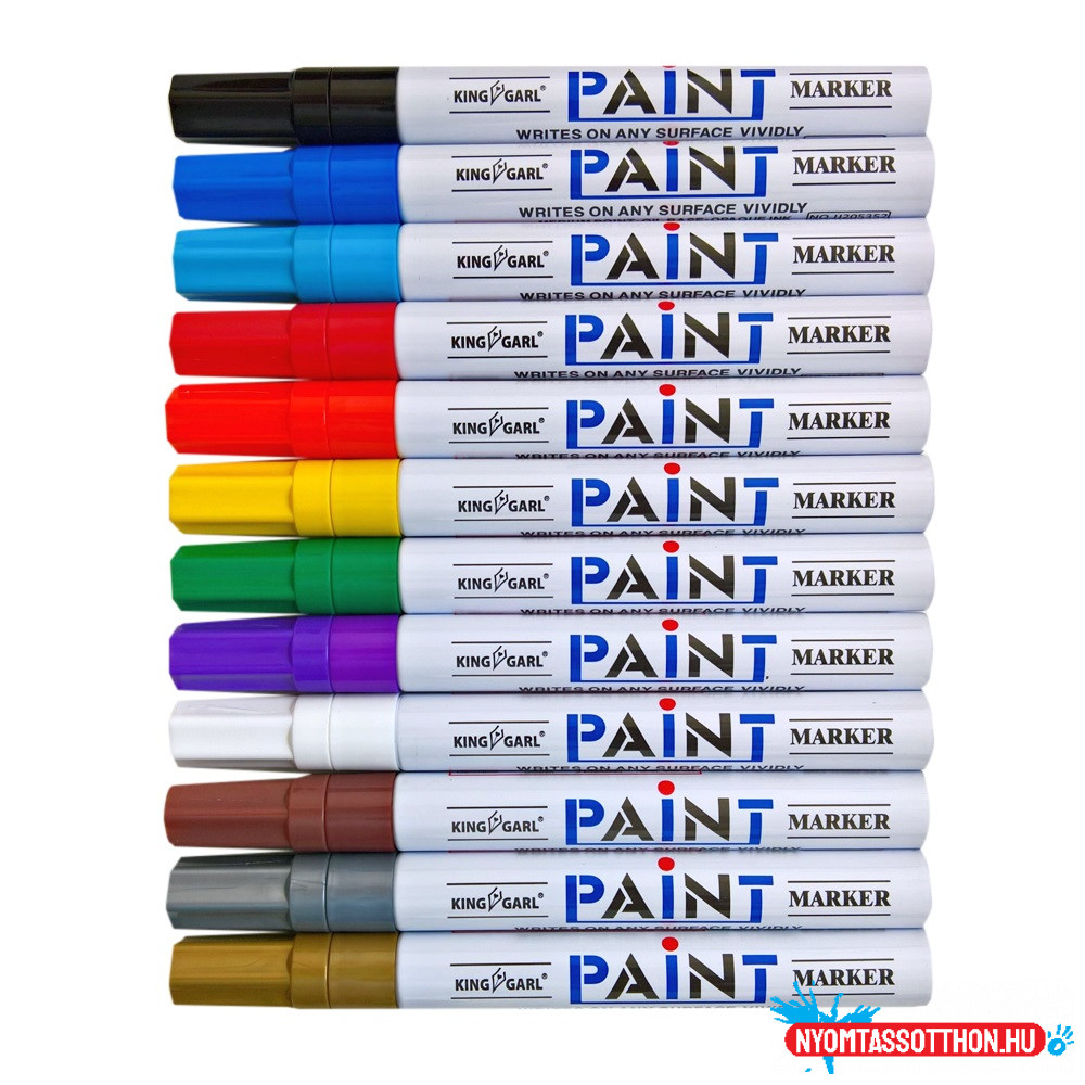 Olajbázisú tintával töltött lakkfilc ami minden felületre használható, vízálló, törölhetetlen. Írásvastagság: 2-3mm 12db/doboz, kúpos hegyű. 144db/gyűjtő, 576db/karton