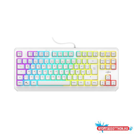 Közvetlen hozzáférés 12 multimédiás funkcióhoz (FN funkciók) - könnyen ellenőrizheti az e-maileket vagy megnyithatja a webböngészőt a játékmenet megszakítása nélkül * A pontos és gyors válaszok minden helyzetben garantáltak az anti-ghostingnak köszönhetően, akár 26 billentyű átfordításával és a WIN lock funkcióval * Gyorsan reagáló játékbillentyűzet kompakt Tenkeyless elrendezésben * Gyors válasz: hosszú élettartamú billentyűk extrém beviteli sebességhez * Kompakt, vékony kialakítás: nincs számbillentyűzet * RGB színekben történő megvilágítás be- és kikapcsolható: színváltás vagy 7 egyedi szín * Beépített memória a fénybeállításokhoz * Súly: 540 g * Kábel hossza: 180 cm