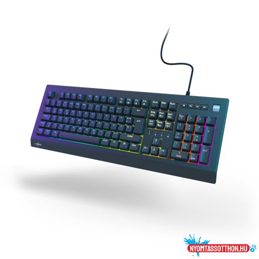 Az Outemu Red kapcsolókkal ellátott mechanikus, lineáris billentyűk nagyon magas beviteli sebességet tesznek lehetővé, akár 50 millió csendes billentyűleütéssel * 16,8 millió színnel rendelkező, teljes RGB megvilágítással ellátott billentyűzet * Az UV-bevonatú ABS műanyagból készült keycap-ek védelmet nyújtanak a kopás ellen * Teljes rugalmasság és rendezettség a kábelkötegelővel ellátott levehető kábelnek köszönhetően * A rugalmas szövetburkolat a kábel körül nagyobb stabilitást és tartósságot biztosít * Gyorsan reagáló, mechanikus billentyűzet * 100%-os formafaktor * Vezérlőgörgő a hangerő beállításához * 4 db további multimédia billentyű * Beépített memória a makró- és világítási beállításokhoz * Win-lock funkció * Állítható magasságú * Súly: 885 g * Kábelhossz: 1,8 m