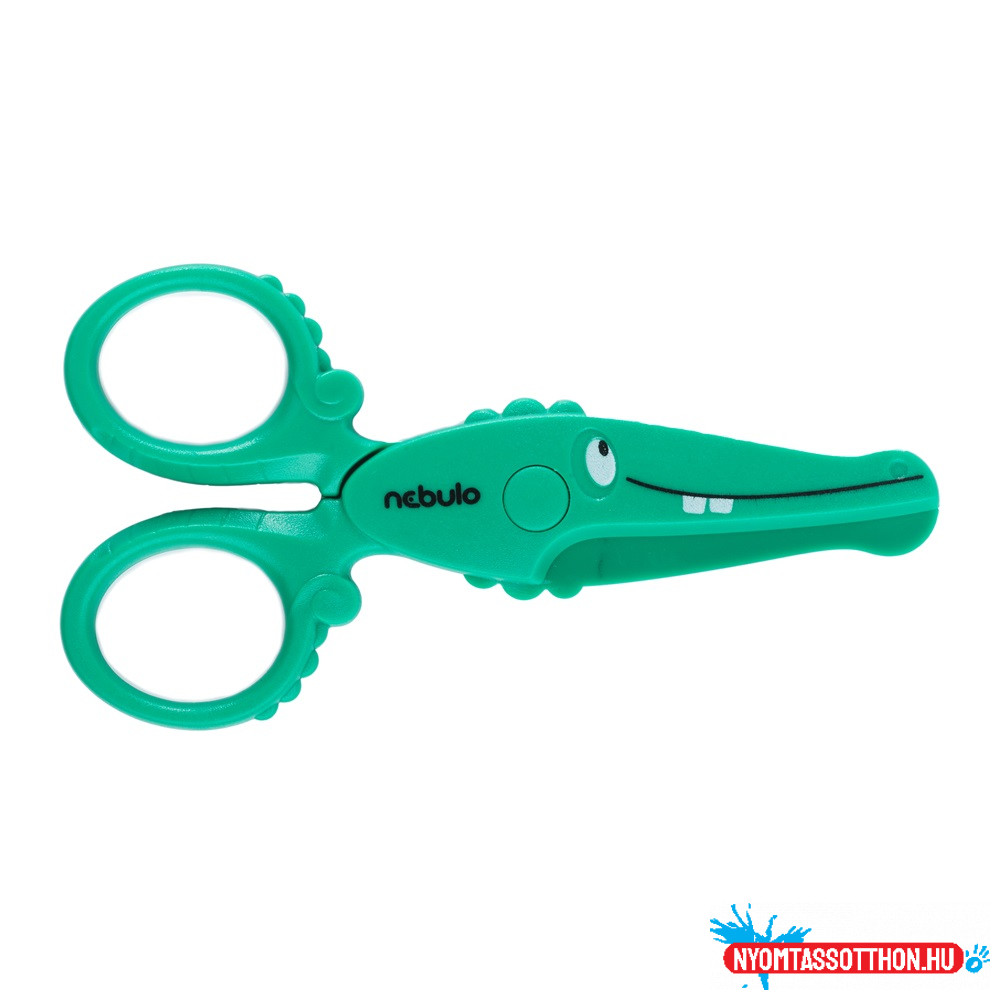 Olló, 12cm, biztonsági, műanyag krokodil forma, Nebulo