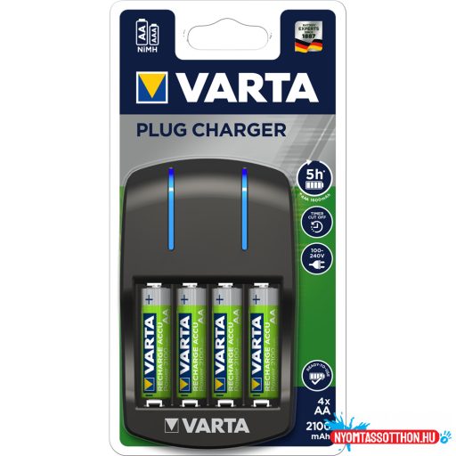 Elemtöltő, akku Plug töltő + 4 db AA 2100 mAH Varta
