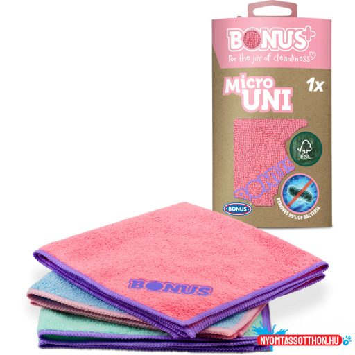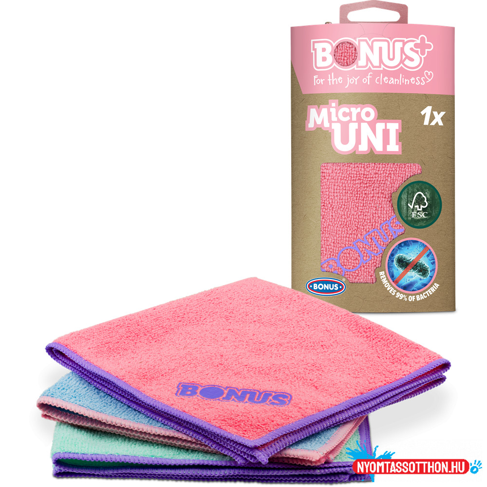 A BONUS+ MicroUNI kendőben a legjobb, hogy minden felületen hatékony, mert nem karcol és nem hagy nyomot. Bátran használhatjuk olyan érzékeny felületekre is, mint kerámialap, az autó karosszériája vagy a TV képernyője.