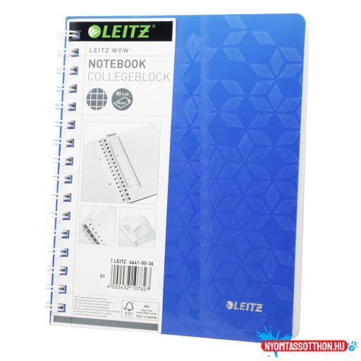 Spirálfüzet A5, 80lap kockás Leitz Wow kék