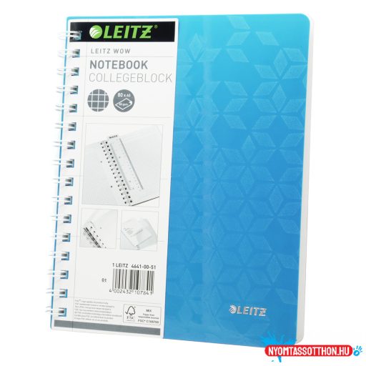 Spirálfüzet A5, 80lap kockás Leitz Wow jégkék