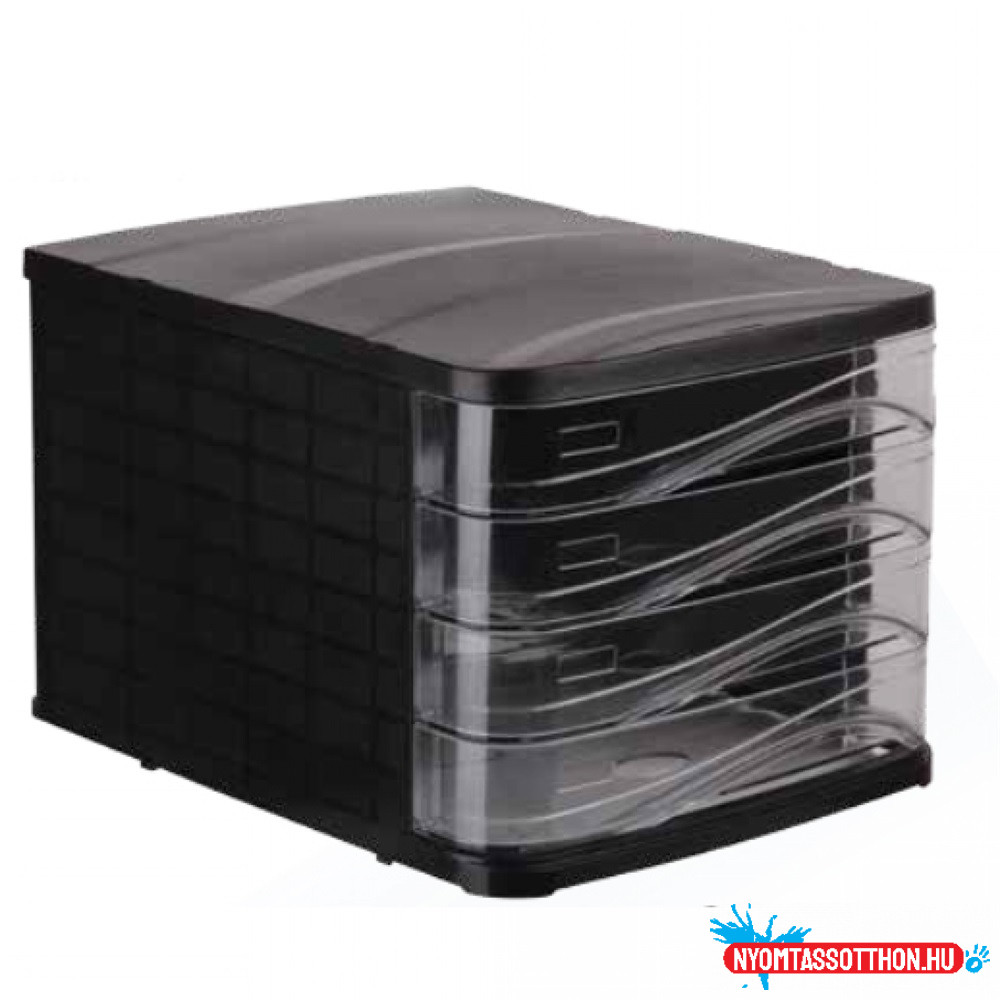 Fiókos irattároló, 4 fiókkal, mûanyag fekete, víztiszta fiókokkal Bluering(R)