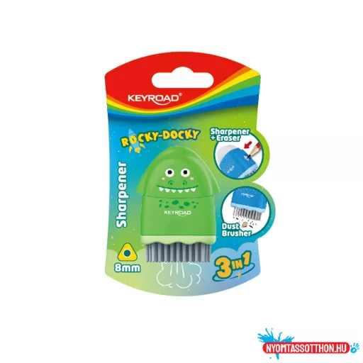 Hegyezõ 1 lyukú radírral és porkefével Keyroad Rocky Docky vegyes színek