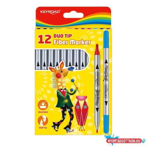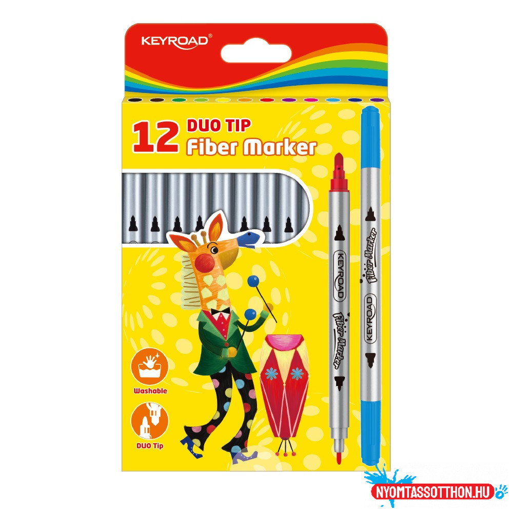 Rostirón, filctoll készlet 2 mm/4 mm kétvégű 12 db/bliszter Keyroad Duo Tip vegyes színek