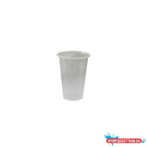 Műanyag, egyszerhaszbálatos sima falú, átlátszó 3 dl-es űrtartalmú pohár.