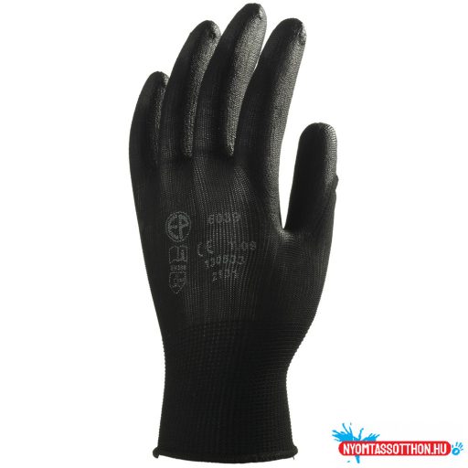 Kötött, rugalmas, nagy szakítószilárdságú 100% poliészter szál, tenyéren poliuretánnal mártott, precíziós kesztyű gumírozott mandzsettával, szellőző kézháttal. Finom, 13-as kötés, extra széles mérettartomány. SZÍN: fekete méret: 9-es csomagolás: 100/10 EU szabvány: EN420, EN388: 4131