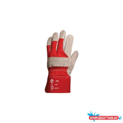 1,2 mm vastagságú, kiváló, szürke marhahasíték erős igénybevételre, tartós, piros vászon kézhát és mandzsetta, artéria-, köröm- és ökölcsontvédő, méret: 8-as, csomagolás: 120/12 ,EU szabvány: EN420, EN388: 3133