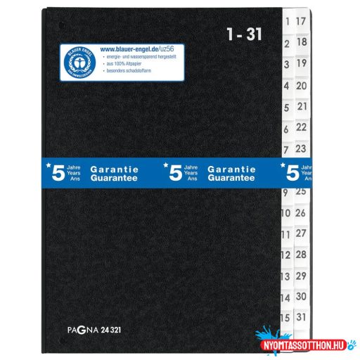 Előrendező 1-31 karton számozott nyitott Pagna fekete