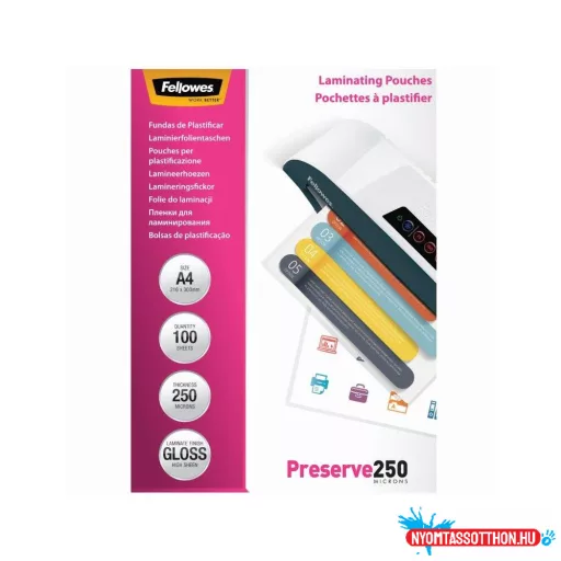 Lamináló fólia, A4, 250 mikron, fényes, 100 db/doboz, Fellowes(R)