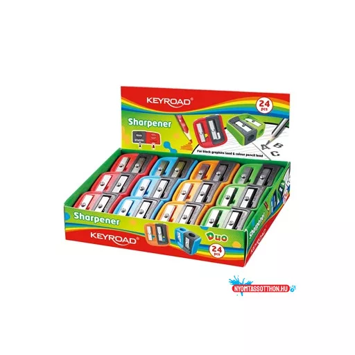 Hegyező, 2 lyukú, 24 db/display, Keyroad Dou-Power, vegyes színek