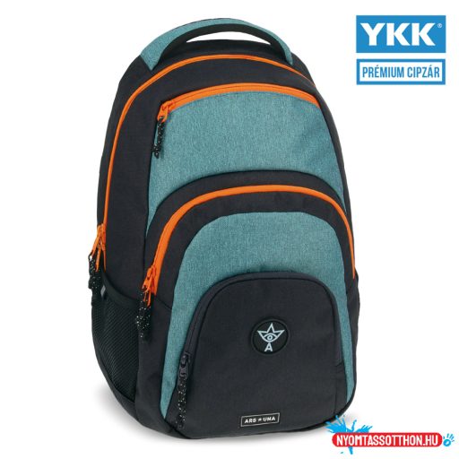- Fekete-türkiz hátizsák narancssárga cipzárakkal