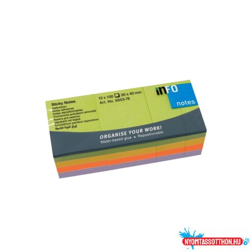Jegyzettömb öntapadó, 40x50mm, 100lap, 12 tömb/csomag, Info Notes, spring