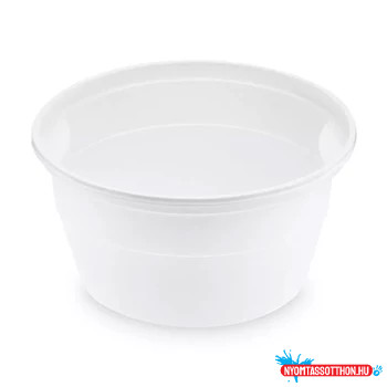 Egyszer használatos műanyag edény, amelyet levesek, gulyás, vagy más folyékony ételek tálalására terveztek. Az ilyen típusú tálak gyakran hasznosak rendezvényeken, éttermekben vagy háztartásokban, ahol gyors és egyszerű tálalási megoldásra van szükség. Műanyag, amely könnyű, de tartós, és ellenáll a hőnek, így forró ételek tálalására is alkalmas.
