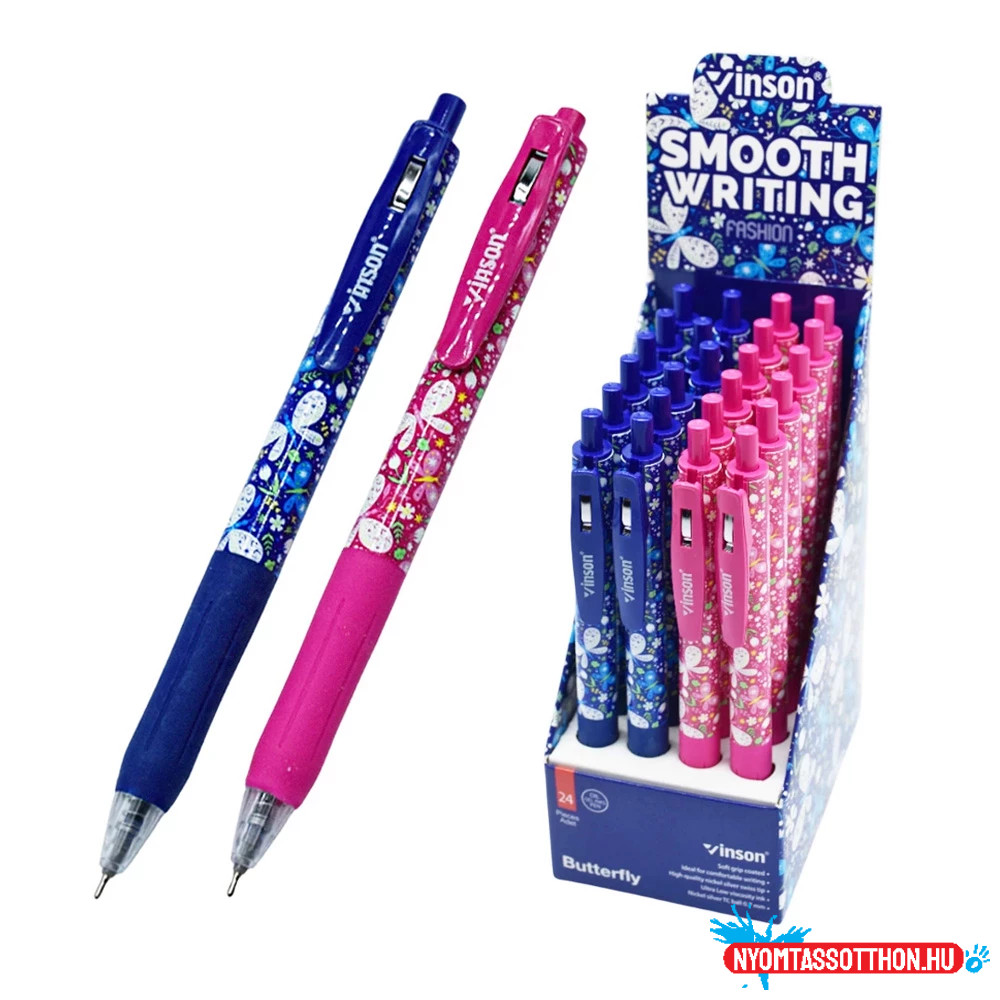 Golyóstoll nyomógombos 0,7mm Vinson Butterfly 520 vegyes test displ 24 db/display