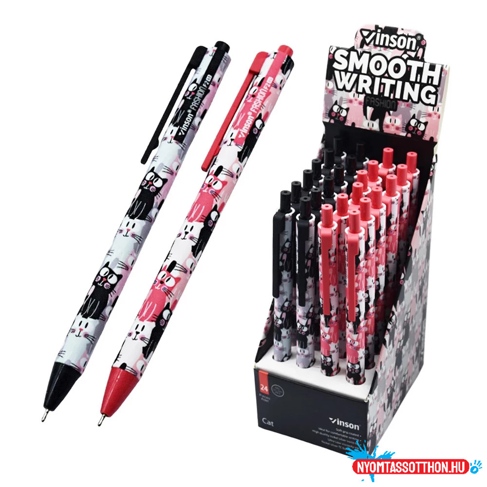 Golyóstoll nyomógombos 0,7mm Vinson Cat F2 vegyes test displ 24 db/display