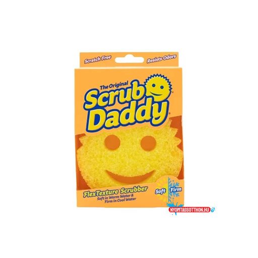 A Scrub Daddy® súrolószivacs egyedülálló FlexTexture® anyagból készült, ami változtatja keménységét: meleg vízben puha és erősen nedvszívó. Hideg vízben kemény, hogy segítsen a makacs koszok eltávolításában. Ergonomikus kialakítású, nem karcolja a felületeket, könnyen tisztára öblíthető, mosogatógépben tisztára mosható.