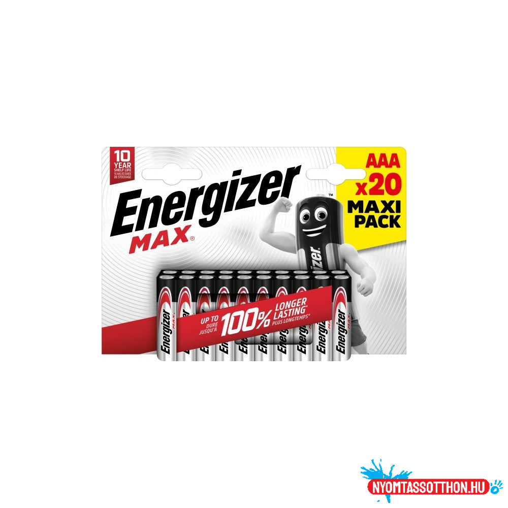 Az Energizer Max AAA / LR03 alkáli elemek megbízható teljesítményt biztosítanak a mindennapi eszközökben. A 20 darabos csomag ideális választás távirányítókhoz, vezeték nélküli egerekhez, játékokhoz, zseblámpákhoz és más AAA méretű készülékekhez.