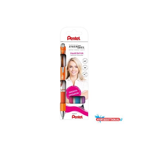 A Pentel BL77-4 EnerGel zselés toll szett a gyors száradás, a sima írás és a modern megjelenés tökéletes kombinációja. A csomag négy közkedvelt színt tartalmaz: narancs, pink, világoskék, lila, így minden helyzetre megtalálható a megfelelő árnyalat. A 0,7 mm-es hegy vastag, határozott vonalakat eredményez, a nyomógombos kialakítás praktikus és kényelmes, az ergonomikus, gumírozott markolat pedig biztos, csúszásmentes fogást garantál még hosszabb írás során is. Katalóguskód: 64724