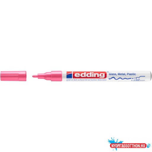 Üveg, porcelán, műanyag, fém illetve szinte minden felület feliratozására, jelölésére alkalmas, különösen ajánlott szennyezett felületekhez, lakk- és dekorációs fémtestű marker. Kerekített csúcs, fémtest, permanent, lakkszerűen fedő festékkel töltve. Gyorsan száradó festék, írásképe törlés- és vízálló, magas fény- hő- és törlésálló. Festékadagolása egyenletes, szelep vezérli, pótcsúcsolható (EDDDING 751 N írócsúcs). Vonalvastagság: 1-2 mm. 10db/dob