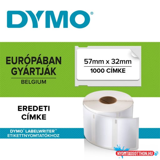 Etikett Dymo LW nyomtatóhoz eltávolítható 32x57mm, 1000 db etikett/doboz, Original, fehér