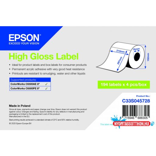 Epson 210mm x 297mm 194 magasfényű címke