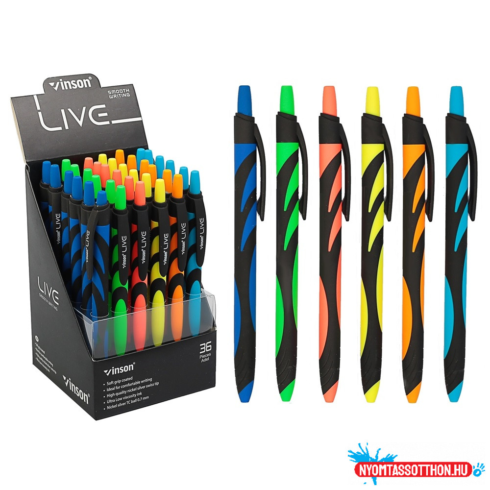 Golyóstoll nyomógombos gumírozott test Vinson F20 vegyes displ 36 db, írásszín kék