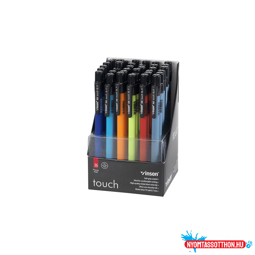 Golyóstoll nyomógombos gumírozott test Vinson X6 vegyes display 36 db