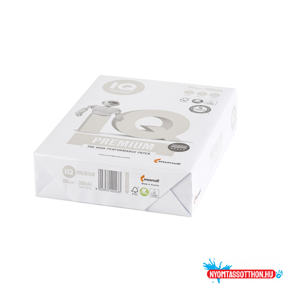 Másolópapír A4, 100g, IQ Premium 500ív/csomag, 4csom/doboz,