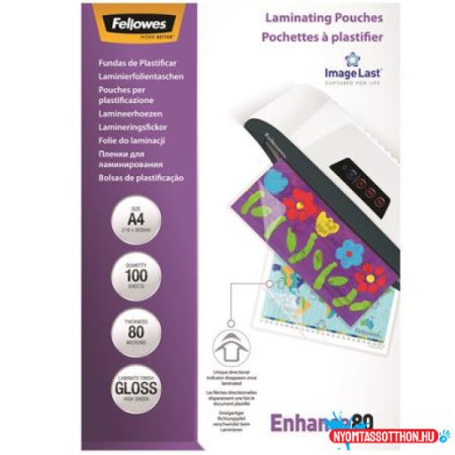 FELLOWES meleglamináló fólia A4 80mic fényes 100db