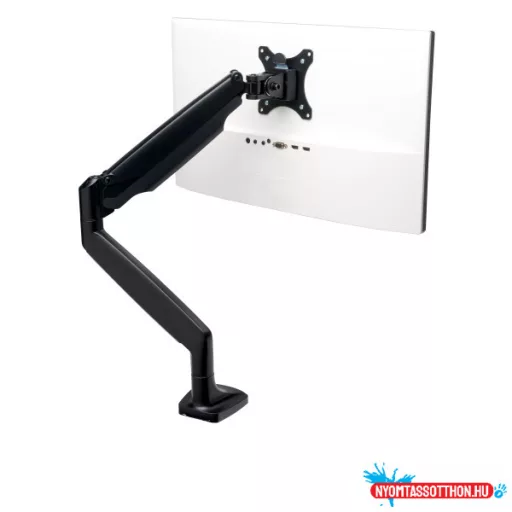 Egy mozdulattal beállítható monitorkar gázrugóval és beépített stabilizáló ellensúllyal: használja ki a gondtalan és gyors beállítás lehetőségét, beállíthatja a magasságot, mélységet, és a betekintési szöget is. A 170 -505 mm tartományban választható magassággal,a +-90° dőlési és betekintési szögtartományban bármilyen beállítás lehetséges. A teljesen automatikus működésű gázrugó segítségével teljes szabadsággal választhatja ki a monitor kínánt elhelyezését, legyen az vízszintes, vagy függőleges képarány. Az ellensúlyok segítenek a rögzítőkar lazításában, vagy megerősítésében a monitor súlyától függően a teljes stabilitás érdekében.