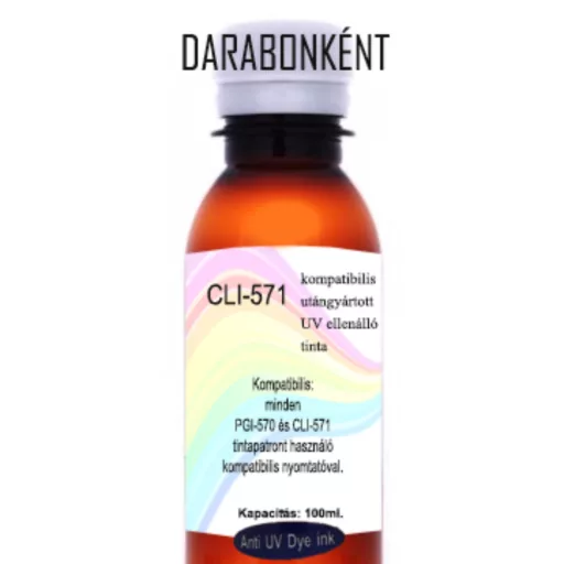 Egy palack 100ml tintát tartalmaz. Összevetőlegesen: egy eredeti PGI-570 fekete szöveges tintapatron 15ml tintát tartalmaz, egy eredeti CLI-571 tintapatron átlagosan 7ml tintát tartalmaz, így összehasonlítható, hogy ez a 100ml-es tintapalack mennyi időre elegendő.